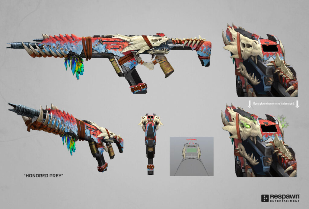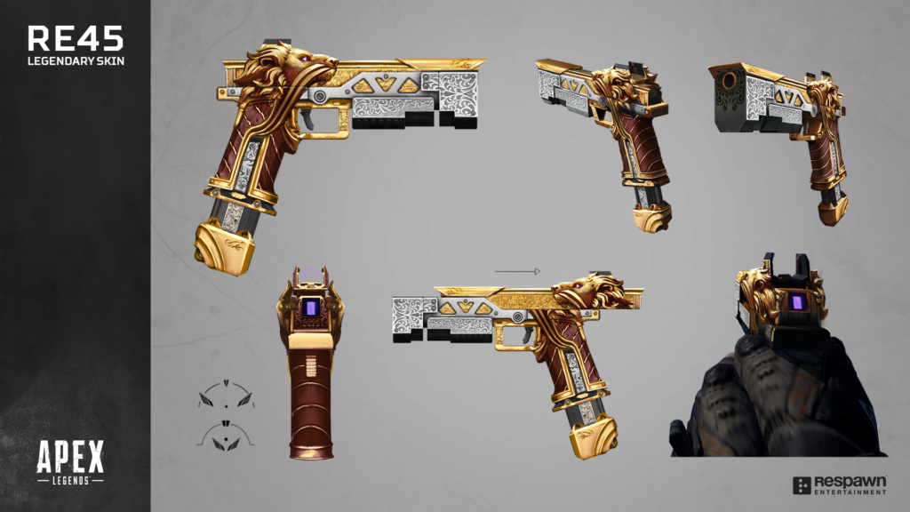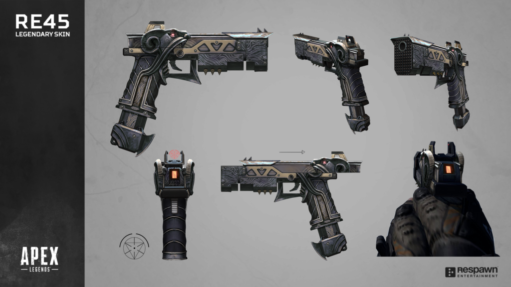 Apex Legends Weapon Skins Studio Respawn Entertainment Posted in Concept Art PrevNext Honored Prey Legendary Skin Concept RE45 Good vs Evil Legendary Skin (Evil) RE45 Good vs Evil Legendary Skin (Good) Reckoner Legendary Skin Concept Boomstick Legendary Skin Concept R-99 Reactive Legendary Concept